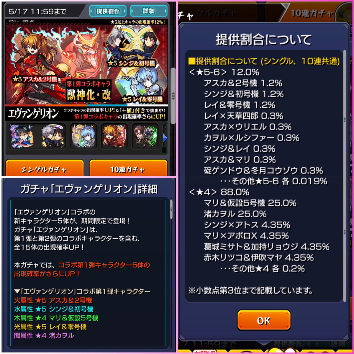 ざらし ᴥ בטוויטר モンストニュース 第2部 獣神化情報 エヴァンゲリオン モンスト アスカ 2号機 レイ 零号機 シンジ 初号機 リツイートお願いします 拡散希望 エヴァンゲリオンコラボ 獣神化 モンスト4周年