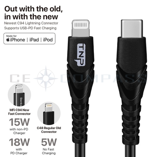 Ce Compass Usb31 C Ltg Blk 6ft Usb C To Lightning Cable 6ft Mfi Certified Fast Charge Type C To Lightning Cable Adapter Cords For Apple Iphone 11 11 Pro 11