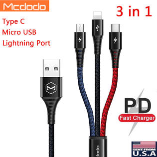Mcdodo 3 In 1 Lightning Micro Usb Type C Charging Cable Iphone Samsung Universal