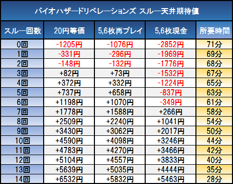 バイオハザードリベレーションズ 天井期待値 スルー回数 狙い目 やめどき 朝一リセット解析 期待値見える化