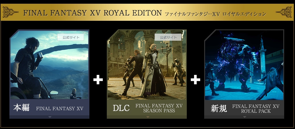 さらに、それら6種類のDLCコンテンツをお得な価格でまとめて入手できる「シーズンパス」も登場。 FINAL FANTASY XV ロイヤルエディション 「FINAL FANTASY XV」ゲーム本編と、「FFXV ロイヤルパック」、「FFXV シーズンパス」、さらに「特典アイテム」がセットになった商品です。 価格: 7,800 円 税 FINAL FANTASY XV シーズンパス 下記6つの追加コンテンツを入手することができ. Final fantasy xv(プレイステーション4) 商品コード: final fantasy(r) xv ultimate collector's edition (ps4) final fantasy xv(プレイステーション4・日本版)に、豪華特典が多数付属した超限定版です!. ソフト本体「final fantasy xv」 映像作品「kingsglaive final fantasy xv」 購入特典:衣装「ルシス王の礼服」、レガリア・カラーリング「プラチナリヴァイアサンエディション」、武器「正宗/final fantasy xv オリジナルモデル」.